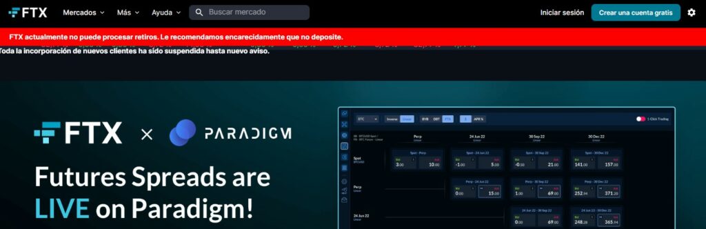 Sin embargo, al visitar la página web oficial de FTX los usuarios se siguen encontrando con un aviso en rojo en el que se lee «FTX actualmente no puede procesar retiros. Le recomendamos encarecidamente que no deposite».