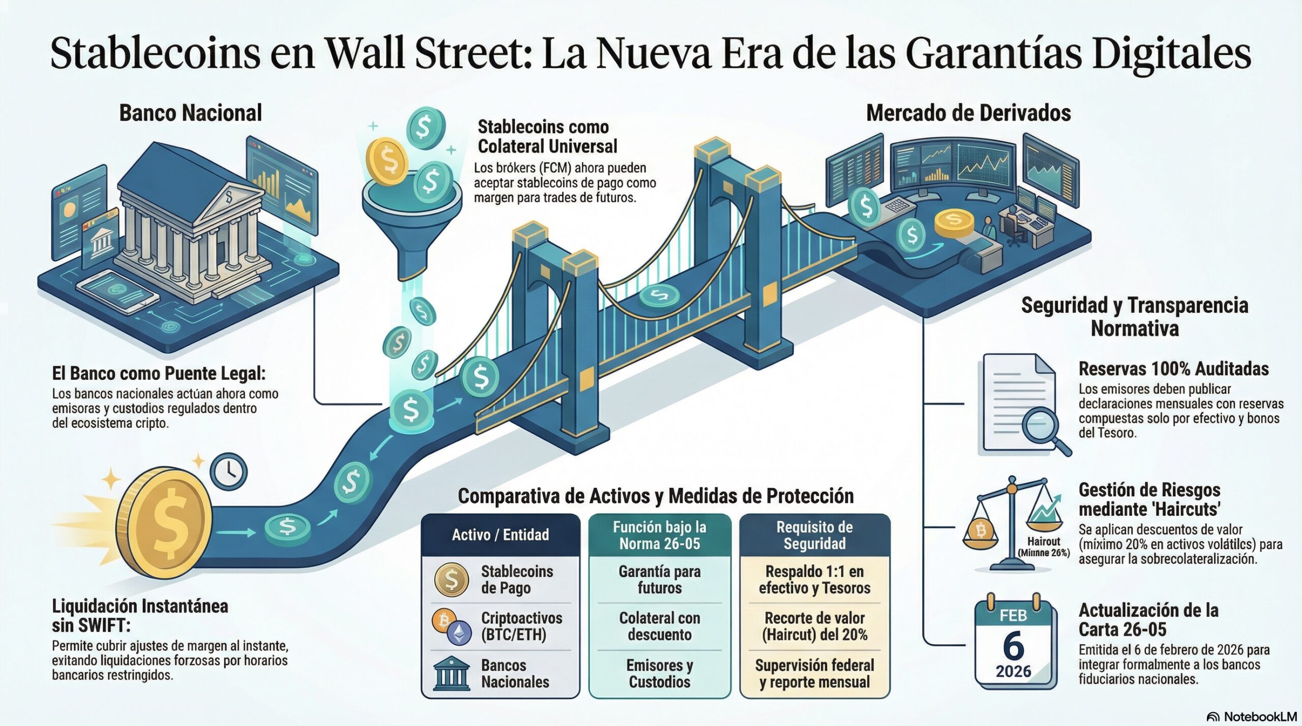 En un movimiento histórico para la convergencia entre las finanzas tradicionales y el ecosistema de las criptomonedas, la Comisión de Negociación de Futuros de Productos Básicos (CFTC) reemitió la Carta 26-05. Esta normativa redefine el papel de los activos digitales en los mercados regulados, permitiendo que las stablecoins emitidas por bancos nacionales actúen como un engranaje fundamental en la maquinaria de Wall Street.