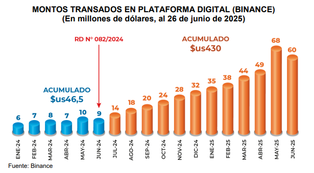 El crecimiento aceleró de manera exponencial. El volumen de transacciones que registró el BCB saltó de los 46,5 millones de dólares en el primer semestre de 2024 a 294 millones de dólares en el mismo periodo de 2025.