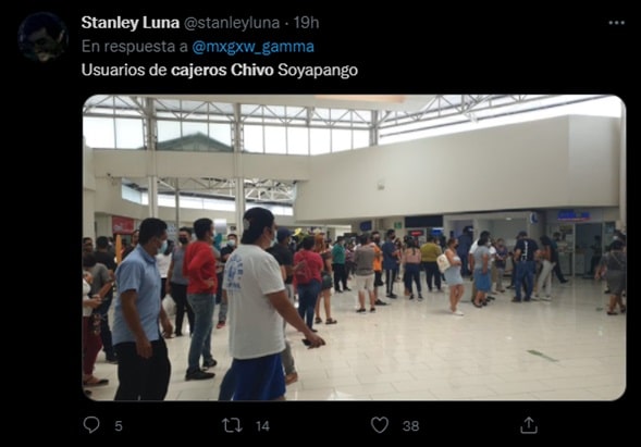 También se ha dado la situación de que los cajeros cierren antes de tiempo, como denunció la usuaria @Gueritachula503. Esta salvadoreña alegó que las personas a cargo de uno de los cajeros limitaron los retiros una hora antes de la hora de cierre, a las 5 de la tarde. Además, cuestionó que los cajeros cerraran. Pero matizó evaluando que probablemente se debía a los disturbios que ocurrieron días atrás, cuando un grupo de manifestantes contra el gobierno quemó un cajero Chivo en la capital, San Salvador.