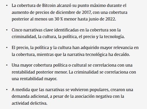La investigación pone énfasis en cómo el interés, que antes se reducía a unos pocos lectores, se incorporó a la cultura pública, logrando que Bitcoin y las criptomonedas sean actualmente un área importante de la cobertura periodística.