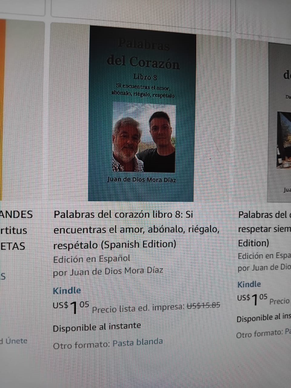 Lejos de darnos por vencidos, buscamos otra plataforma de alcance global: Amazon.com. Para realizar una prueba de bajo monto, nos propusimos encontrar algรบn producto de un dรณlar, como un libro digital. La bรบsqueda nos llevรณ a adquirir una obra literaria seleccionada al azar, ยซPalabras del corazรณn, libro 8ยป, con el รบnico fin de completar la prueba.