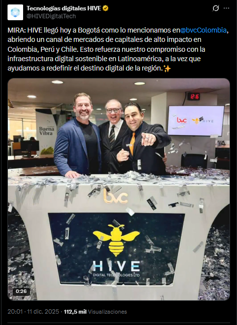 El anuncio busca atraer inversores latinoamericanos en medio de la diversificación del sector hacia la IA, tal como lo dio a conocer Hive en un comunicado difundido el 11 de diciembre de 2025.