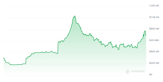 No obstante, en los últimos meses viene cayendo y se trata de una cifra pequeña todavía (alrededor de USD 700 millones) en comparación con gigantes como estas dos monedas estables (la capitalización de mercado de USDT, por ejemplo, supera los USD 141.000 millones).