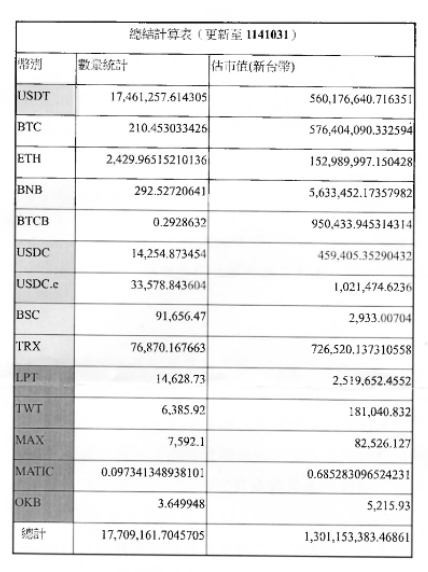 Los activos digitales de Taiwán proceden de operativos contra el fraude y delitos cibernéticos, confirmó el Ministerio de Justicia.