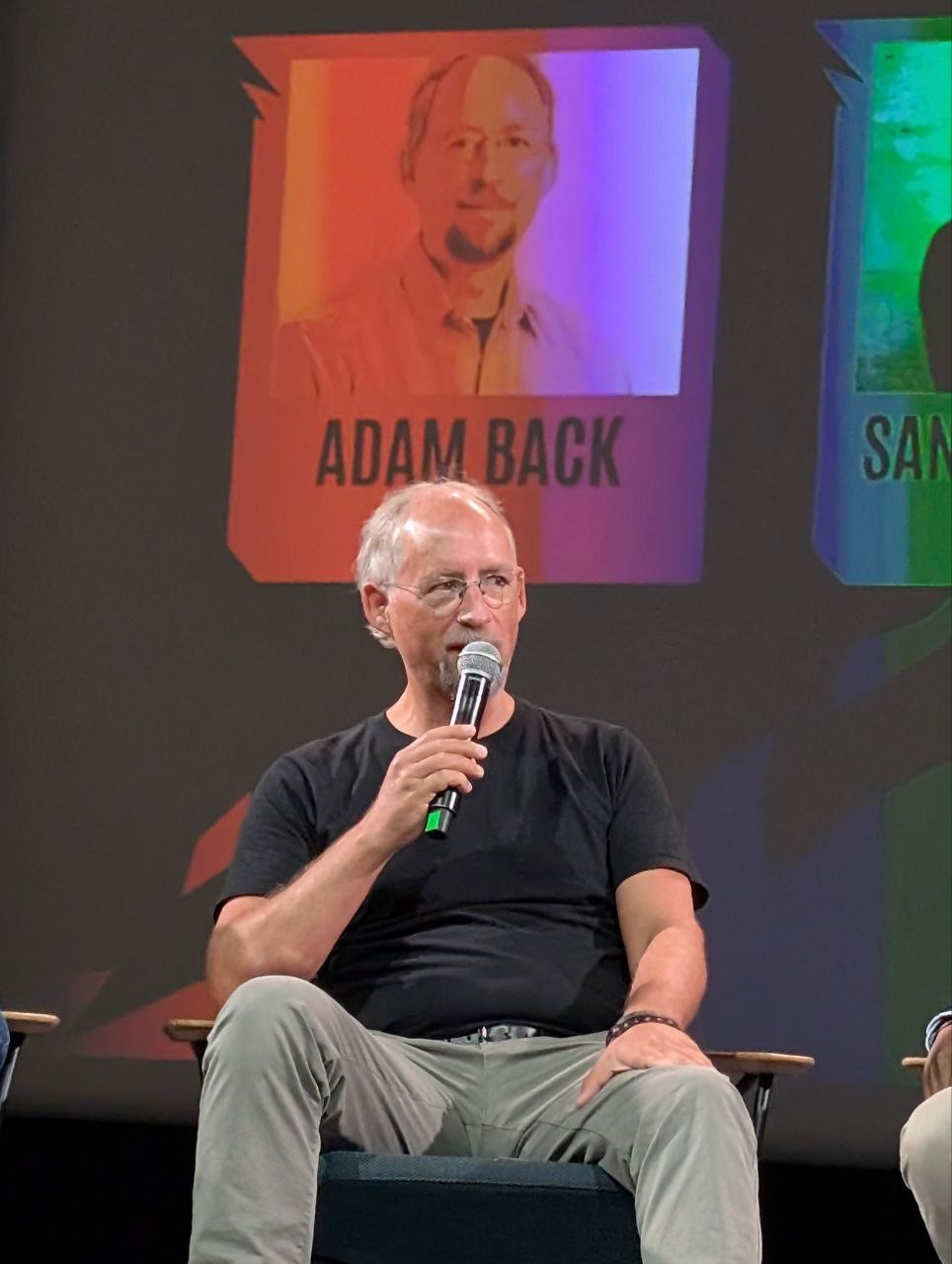 Si bien es indispensable difundir pรบblicamente Bitcoin para que sus beneficios puedan estar al acceso de aquellos que mรกs lo necesitan, hay conversaciones que es mejor mantener entre pares, inaccesible al ojo sin pรกrpado de la vigilancia digital. Solo una persona, por idiotez o por ignorancia, fue pillada dirigiendo su cรกmara ante el escenario y de inmediato fue interpelado por el ex-Wasabi Wallet, Max Hillebrand.