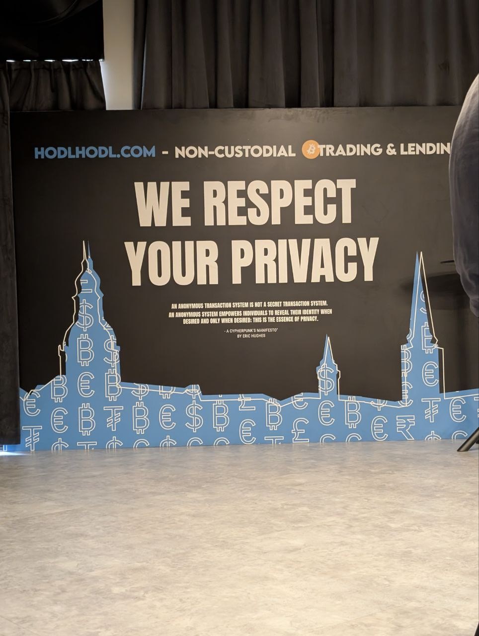 Probablemente, esto explica el foco en la privacidad del escenario cypherpunk en la Baltic Honeybadger. Mientras que el escenario principal difunde en vivo las charlas, en el escenario cypherpunk estรก estrictamente prohibido hacer cualquier tipo de registro.