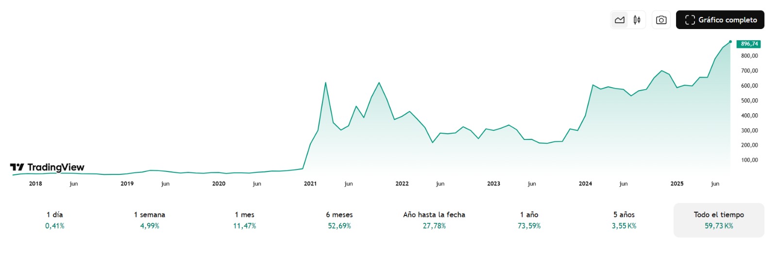 Tras alcanzar un pico superior a los 900 dรณlares, BNB cotiza en 908 dรณlares al momento de redactar esta nota, segรบn datos de TradingView.