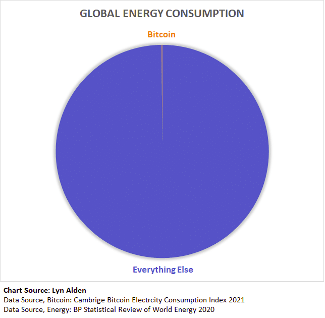 Vale la pena traer a la mesa algunos de los argumentos de la analista Lyn Alden sobre este tema, donde dice que Bitcoin consume menos del 0,1% de la energía a nivel mundial.