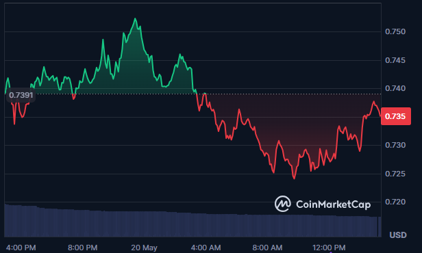 En coincidencia con esta problemática en la comunidad de Cardano, el token de ADA registró una baja desde los 0,75 dólares de la jornada de hoy hasta un mínimo de 0,72 dólares, habiéndose recuperado al momento de esta redacción y cotizando en los 0,73 dólares por moneda, según CoinMarketCap: