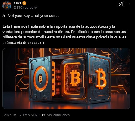 Los exchanges centralizados contradicen este ideal al actuar como bancos modernos, vulnerables a los mismos problemas de confianza, regulación y fallos sistémicos. Por eso, la frase no es solo un consejo práctico, sino un recordatorio de los valores de descentralización y autosoberanía que definen a Bitcoin.