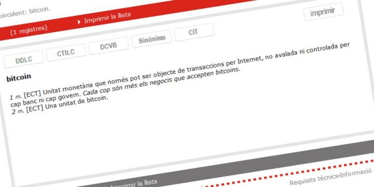 El Instituto de Estudios Catalanes (IEC) incluyó la palabra bitcoin en la nueva actualización de la segunda edición en línea del Diccionario de la lengua catalana (DIEC), informó la propia institución a través de un comunicado este martes 4 de junio.