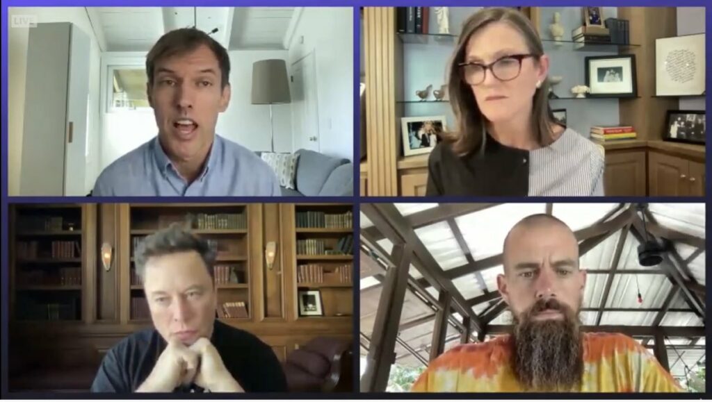 En el evento sobre la actualidad de Bitcoin (BTC), The B Word, este miércoles 21 de julio, el CEO de Tesla y SpaceX, Elon Musk, admitió que las dos compañías poseen bitcoin, y que personalmente ha invertido también en Ethereum y dogecoin. Musk, que participó con el CEO de Twitter y de Square, Jack Dorsey y con la CEO de Ark Invest, Cathie Wood, señaló como «muy probable» que Tesla acepte bitcoin nuevamente como medio de pago.