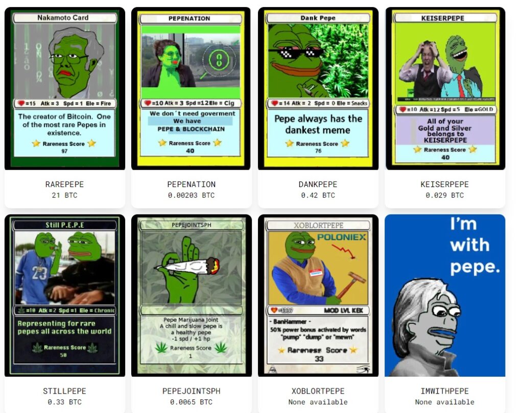 Mientras los tokens coleccionables o NFT se hacen cada día más populares, este nuevo mercado busca volver a las raíces de este mundo, ofreciendo Rare Pepes que corren sobre la red Bitcoin.