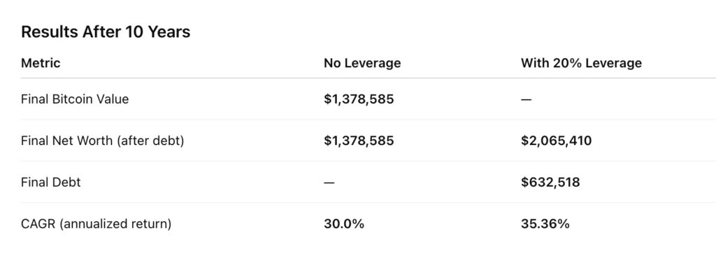 Según Krueger, todo queda en números claros mientras el apalancamiento de Strategy ronde el 20%. Ese nivel, bajo su criterio, ofrece un balance ideal: sube la rentabilidad anual compuesta de BTC del 30% al 35% sin poner en jaque la estabilidad de la organización.