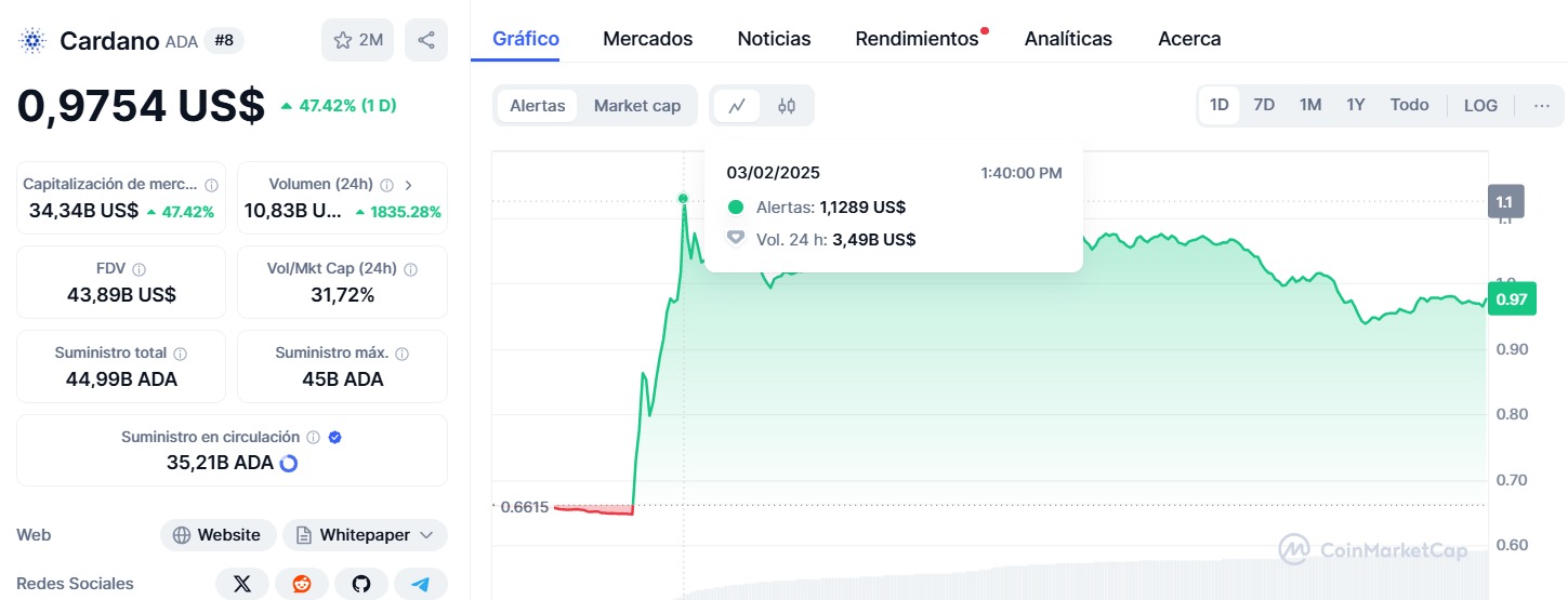 Es importante destacar que, tras el anuncio, las criptomonedas ADA, SOL y XRP experimentaron aumentos de más del 50%, 20% y 30%, respectivamente. Al momento de redactar este artículo, sus valores son de USD 0,975, USD 160,94 y USD 2,63, según datos de CoinMarketCap.