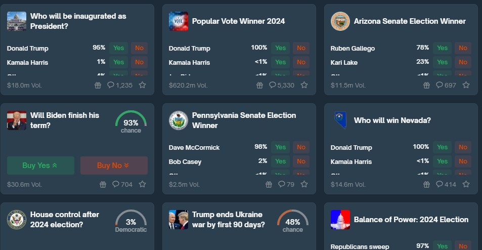 En sí, Polymarket es una plataforma de apuestas descentralizada que funciona como una especie de bolsa de valores para eventos futuros, donde los usuarios compran acciones vinculadas a preguntas específicas, como el resultado de una elección o el movimiento del precio de una criptomoneda. Y en el reciente panorama electoral de Estados Unidos se destacó por su capacidad para anticipar resultados electorales de manera más precisa que los medios tradicionales.
