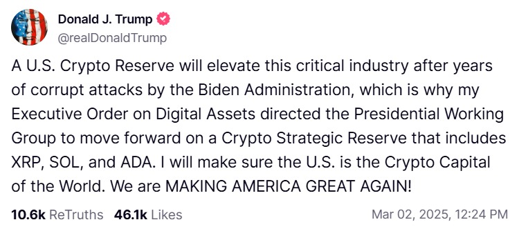 Como es lógico, muchos aguardan que la reunión arroje más claridad sobre la posible creación de una reserva estratégica de criptomonedas en Estados Unidos. En este contexto, Howard Lutnick, Secretario de Comercio en la administración Trump, sugirió que bitcoin podría recibir un tratamiento especial dentro de la política de criptoactivos del país. Según el funcionario, el Presidente en serio está considerando la idea de establecer una «reserva estratégica de BTC», lo que abriría nuevas oportunidades para la criptomoneda más reconocida a nivel global. Por ende, la del 7 de marzo parece ser una gran ocasión para desvelar nuevas informaciones.