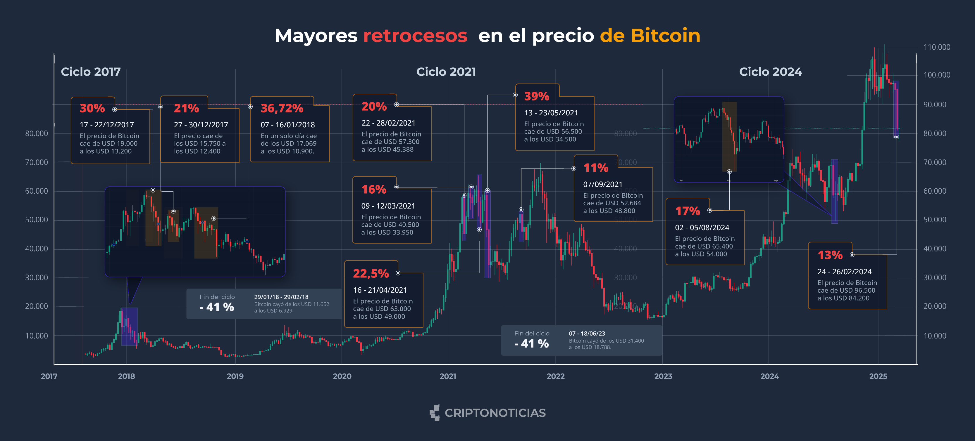 Cerramos hablando del precio de bitcoin que durante las últimas dos semanas ha tenido un retroceso importante en su cotización.