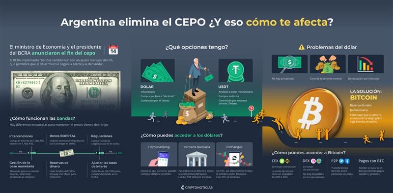 El fin del cepo cambiario ya es una realidad en Argentina. Aquí te dejamos una infografía sobre cómo funciona y qué opciones tienes para comprar dólares en el país del tango y el asado.