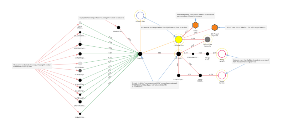 Con un análisis de cadena se pueden hacer clústeres o agrupación de transacciones para identificar vínculos comerciales de grupos. También se pueden identificar saldos totales de tenencias, volúmenes de pagos, días y horas en las que se realizan transacciones e intercambios por otras criptomonedas. Incluso hacer análisis de riesgo de transacciones para identificar si en su historia han estado vinculadas con actividades ilícitas.