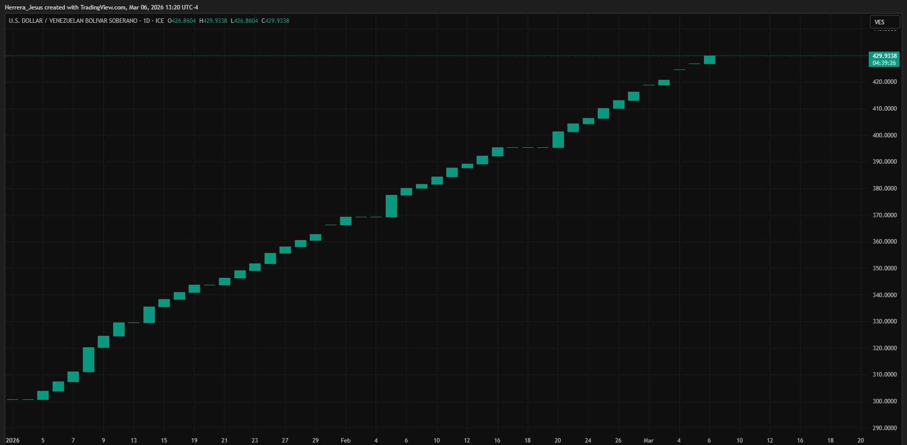 Esta tendencia se ve reflejada claramente en la siguiente gráfica de TradingView, donde se observa una escalada constante y sin retrocesos significativos en la paridad entre el dólar y el bolívar venezolano.