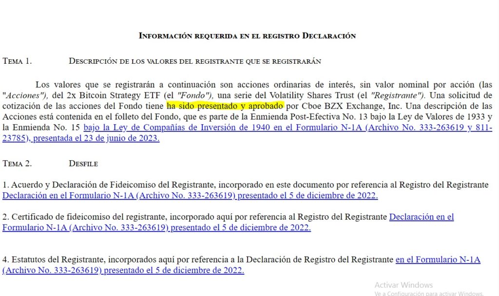 Un documento de la SEC publicado este viernes deja ver que el organismo regulador de valores de Estados Unidos aprueba la solicitud de emisión del x2 Bitcoin Strategy ETF (BITX), de la empresa Volatility Shares.