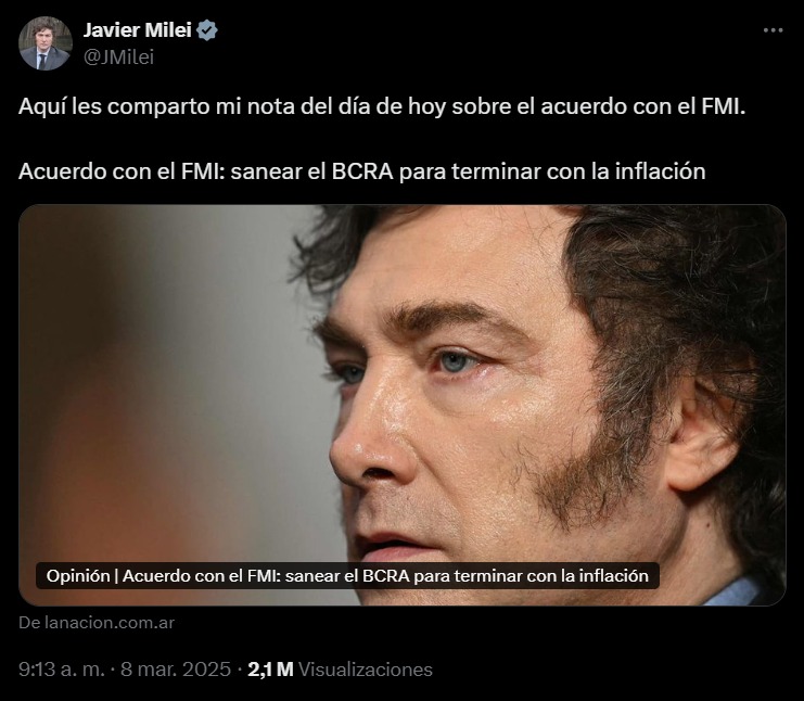 Para Milei, no basta con frenar la emisión de dinero o estabilizar el tipo de cambio: también es fundamental resolver los desequilibrios estructurales del Banco Central. Argumenta que si la entidad monetaria tiene un patrimonio neto negativo —es decir, si sus pasivos superan el valor de sus activos—, la economía arrastra una presión inflacionaria latente. Es por esta razón que habrían acudido al FMI: para aumentar reservas y sentar las bases de un proceso desinflacionario que sea sostenible.