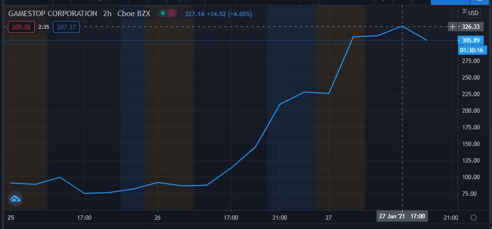 Producto de la pandemia de Covid, GameStop entrรณ en marzo de 2020 en una espiral descendente. La acciรณn de GameStop pasรณ de USD 18,40 al iniciar 2020 y en julio de ese aรฑo habรญa bajado a USD 4,50. A pesar de una gradual recuperaciรณn del precio de la acciรณn, que cerrรณ el aรฑo a USD 17, un grupo de grandes inversionistas de Wall Street decidiรณ tomar posiciones en corto de GameStop. En otras palabras, apostaron a que el precio iba a bajar a finales de enero.