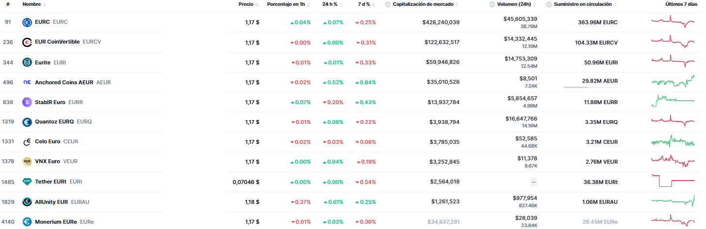 Actualmente, la capitalización total de las stablecoins asciende a 322.900 millones de dólares, de los cuales 314.000 millones corresponden a tokens respaldados por el dólar. En contraste, los activos vinculados al euro representan 677 millones de dólares, lo que muestra hasta qué punto esta moneda sigue teniendo una presencia marginal dentro del sector.