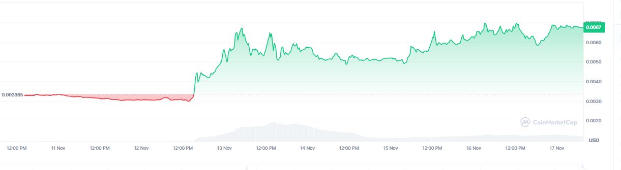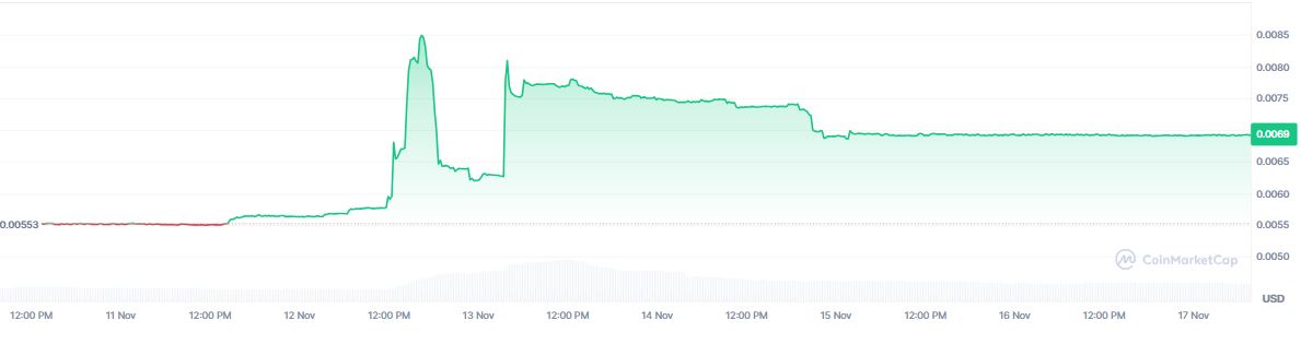 En solo 7 dรญas, la cotizaciรณn del activo pasรณ de 0,0055 a 0,0069 dรณlares, lo que representa una subida del 25,4%.