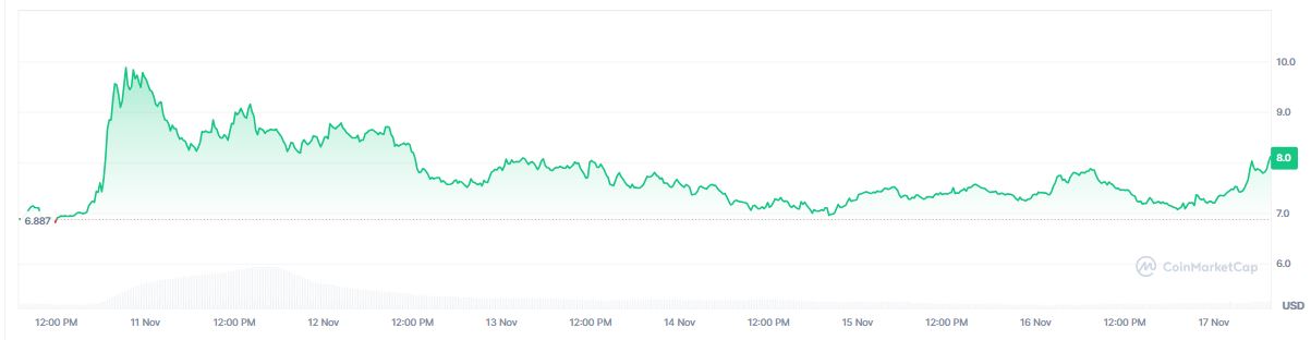 En los รบltimos 7 dรญas, el precio de UNI pasรณ de 6,98 a 8 dรณlares, lo que representa una subida del 14,6%.