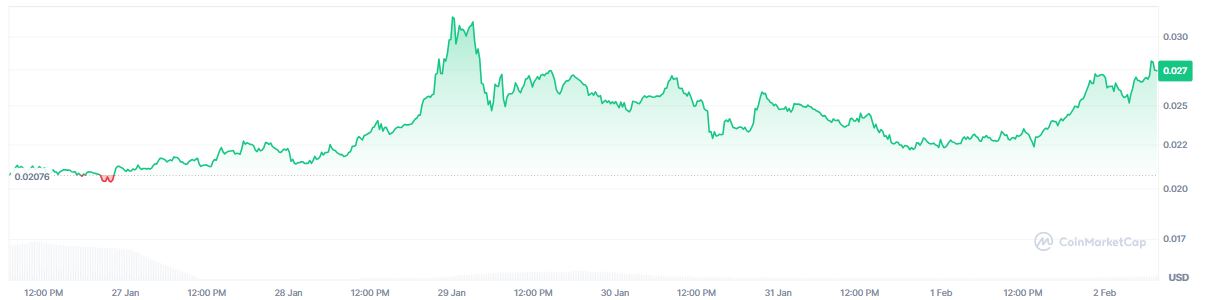 En los últimos 7 días, el precio de este activo pasó de 0,020 a 0,027 dólares, lo que representa una suba de alrededor del 35%.