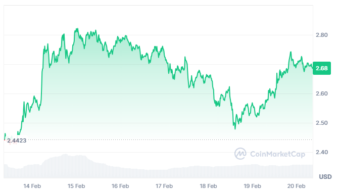 Actualmente, su precio es de 2,68 dólares, 20% debajo de su máximo histórico (ATH) de 3,39 dólares.