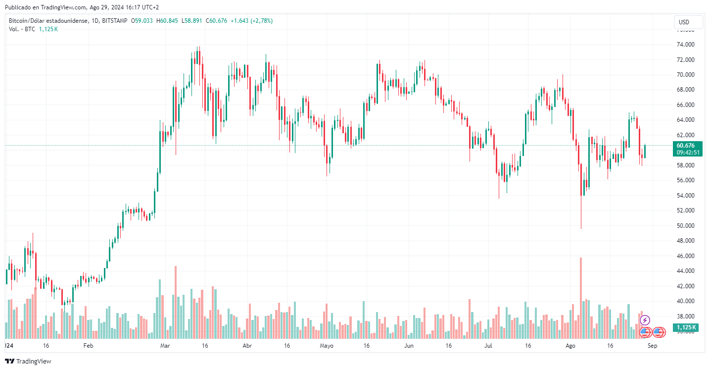 Un repunte de las acciones, tal como lo proyecta Hooper, puede traducirse en un aumento de la demanda de la moneda digital creada por Satoshi Nakamoto. Sobre todo, teniendo en cuenta que en el mes de agosto, BTC actuó en correlación con estos instrumentos financieros.