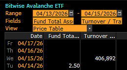 La firma de inversiones Bitwise lanzó hoy, 15 de abril de 2026, en el mercado estadounidense, un fondo cotizado en bolsa (ETF) de la criptomoneda avalanche (AVAX), bajo el ticker BAVA.