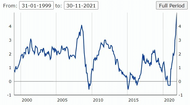 Mientras la Reserva Federal de Estados Unidos advierte que la inflación seguirá por tiempo indefinido en el país, el Banco Central de Europa prevé un panorama opuesto para su continente. La entidad reveló que la inflación actual de Europa es la más alta de la historia, siendo de 4,9%, mientras que en Estados Unidos llegó al 6,2%.