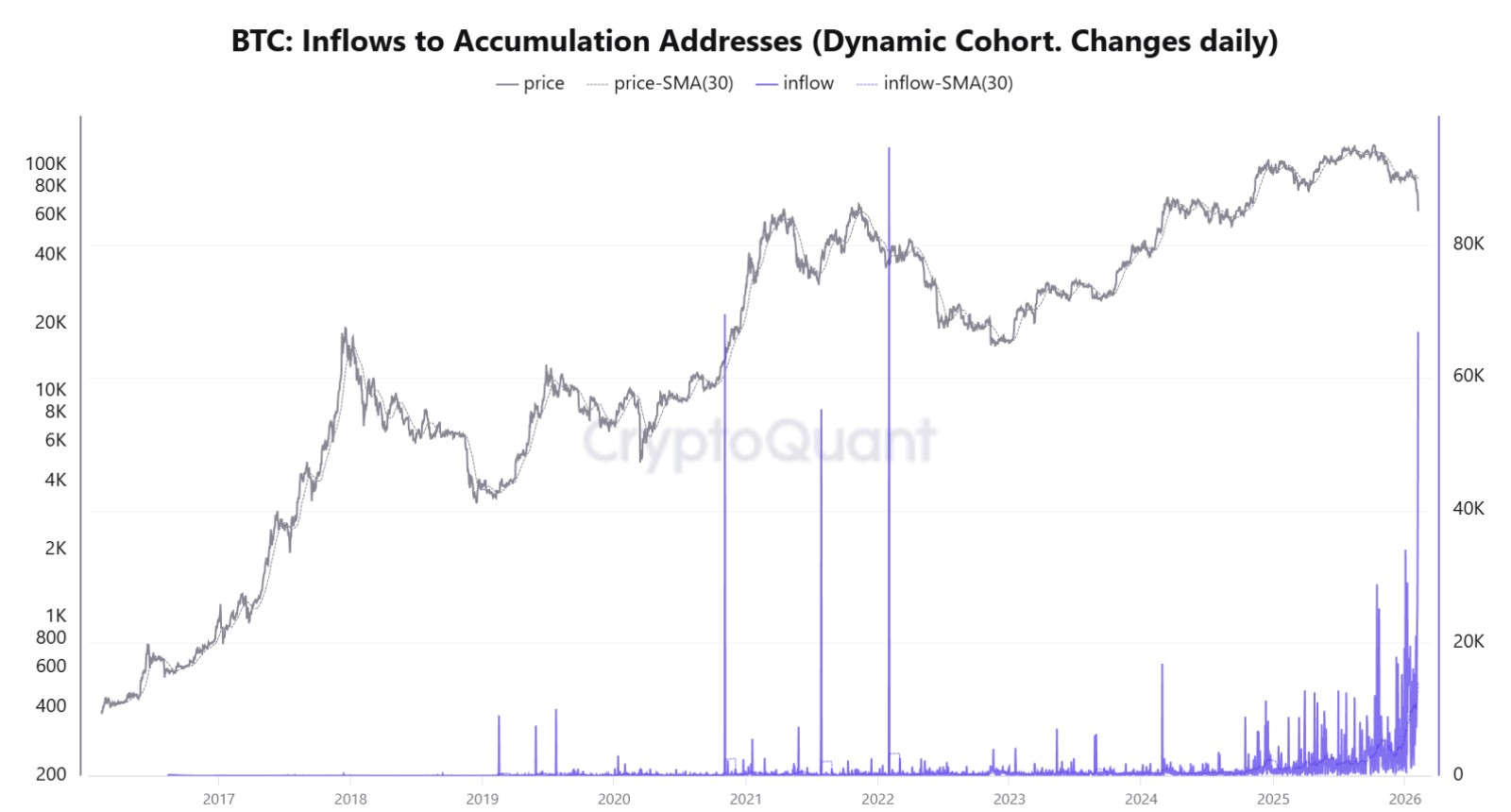 El flujo se dirigió a wallets que solo reciben bitcoin de forma sostenida, sin registrar gastos ni salidas, lo que típicamente caracteriza a ballenas, instituciones o inversores a largo plazo.