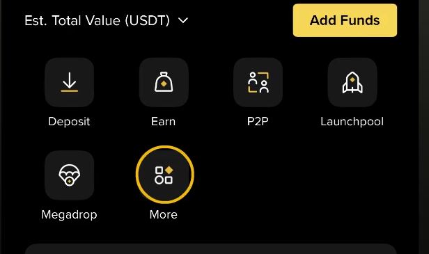 Para emplear esta funcionalidad, es escenario estar registrado en el exchange. Una vez dentro (sea desde la app para telรฉfonos mรณviles, como se verรก en el siguiente ejemplo, o desde el sitio web para computadora) el usuario debe dirigirse la pestaรฑa al รญcono ยซMoreยป (mรกs, en espaรฑol).