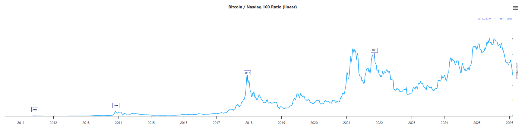 La alta correlación con el índice Nasdaq 100 explica parcialmente el desplome del precio de bitcoin.