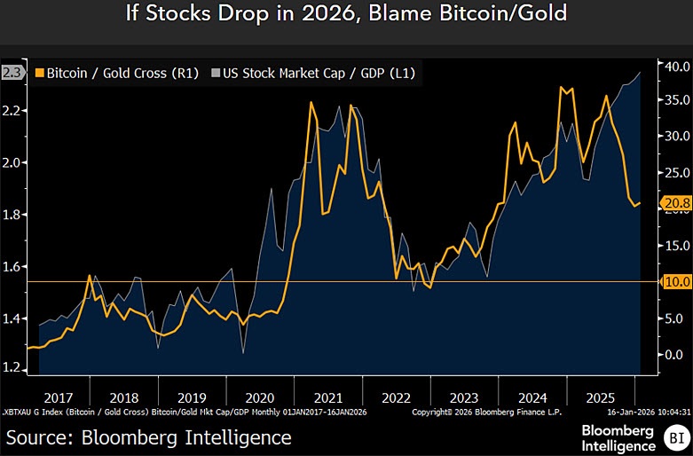 “Bitcoin como perdedor frente al oro podría marcar el camino”, expresó. Según el analista, la relación entre ambos activos funciona como un indicador adelantado del apetito por riesgo global.