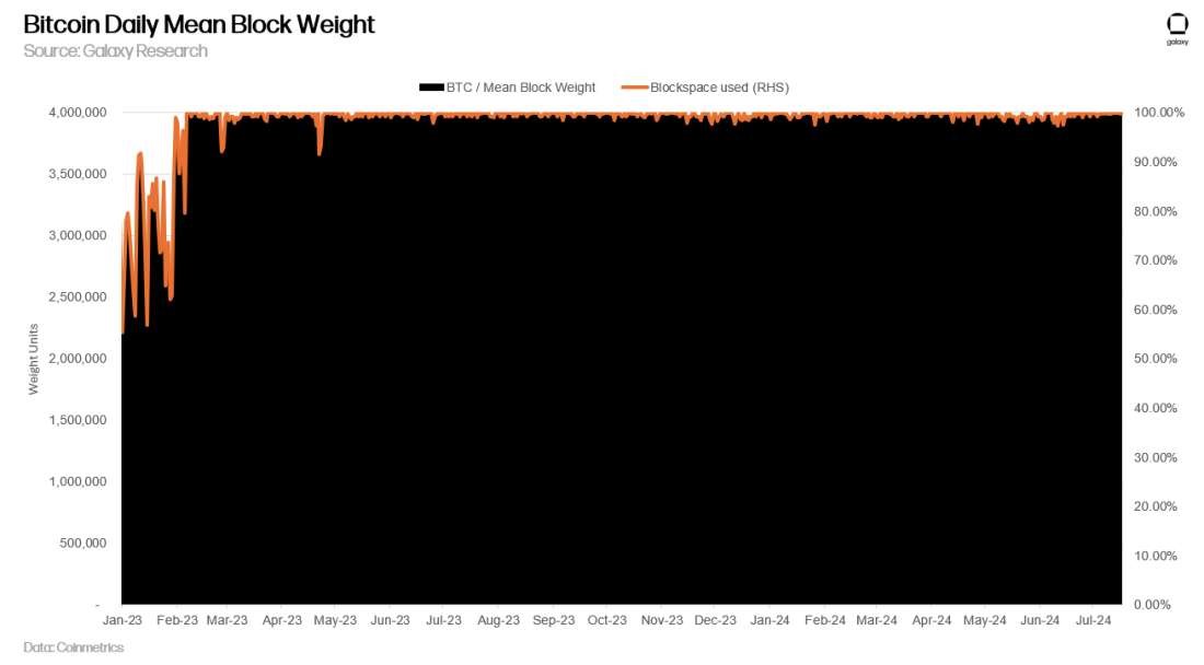 Galaxy, además, advierte que el espacio de bloque de Bitcoin “es el más caro por byte de cualquier cadena”.