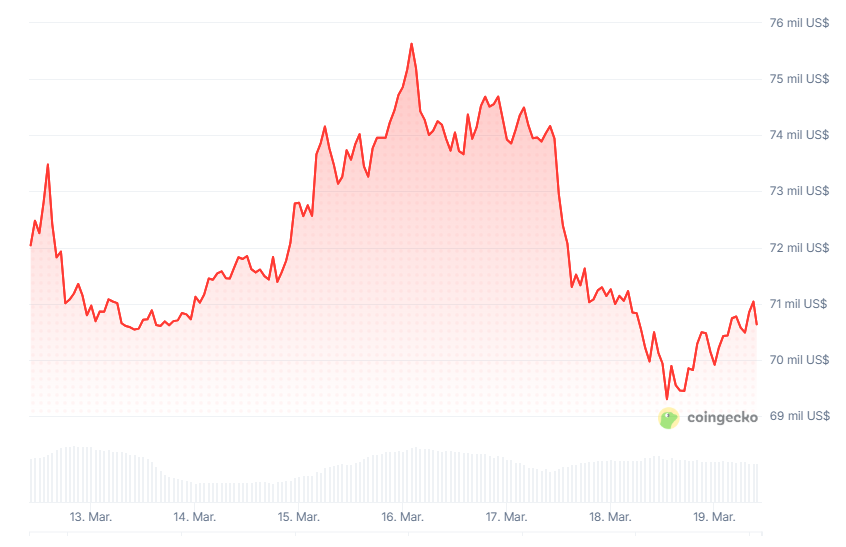 El martes 17, bitcoin superaba los 75.000 dólares y las altcoins lo seguían. El sentimiento del mercado era optimista.
