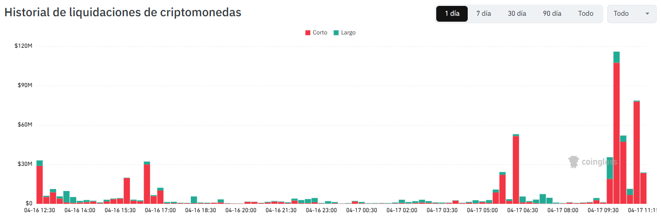 La sorpresiva apertura total del estrecho de Ormuz ha provocado un «terremoto» en los mercados financieros, y el ecosistema de bitcoin (BTC) y las criptomonedas no ha sido la excepción. Este viernes 17 de abril de 2026, en un lapso de apenas dos horas aproximadamente, el mercado de activos digitales registró liquidaciones masivas que rondan los 280 millones de dólares al momento de esta publicación, según los datos proporcionados por Coinglass.