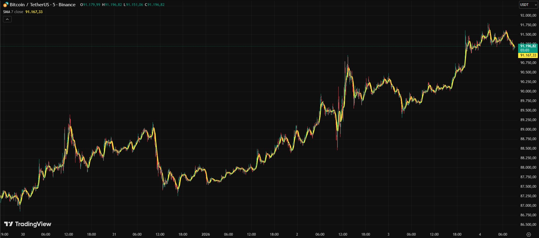 En paralelo, factores técnicos también contribuyen con el incremento de BTC. Uno de ellos es que, con la subida de precio, la cotización del activo superó la media móvil simple (SMA) de 7 días, ubicada en 91.160 dólares.