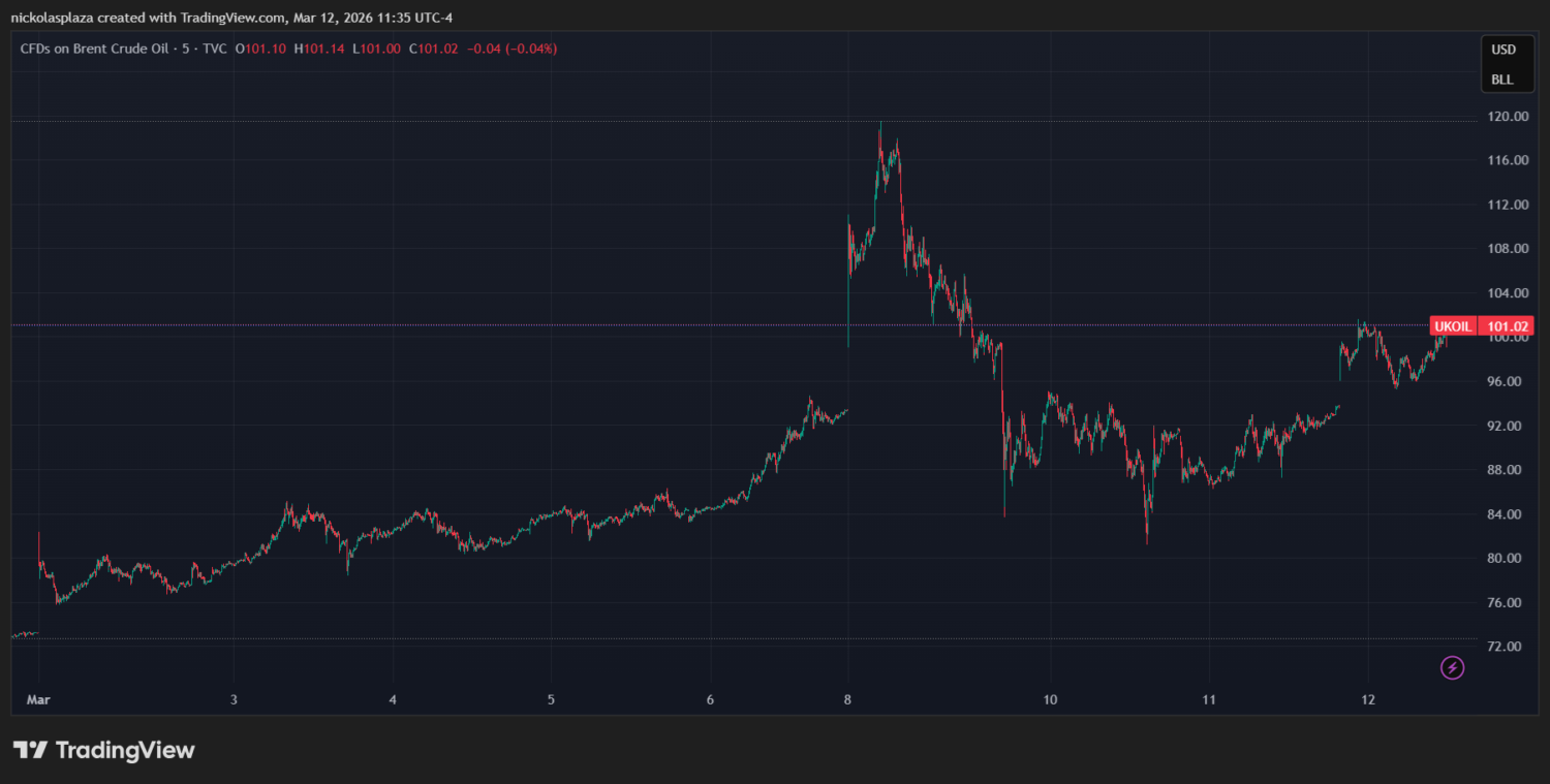 El conflicto bélico ha impulsado el precio del petróleo, que ha superado los 100 dólares por barril por primera vez en más de cinco años. Su valor estuvo muy cerca de los 120 dólares el 8 de marzo. En la jornada actual, el precio del petróleo Brent cotiza en 101 dólares, funcionando como el indicador más preciso para saber qué tan caro o difícil es transportar petróleo por vía marítima.