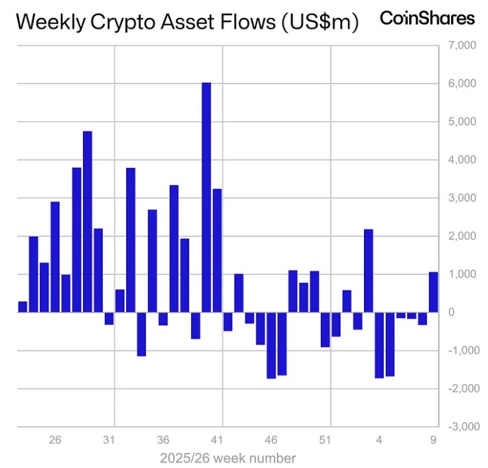 Los productos de inversión en activos digitales a nivel mundial registraron un giro en el sentimiento del mercado durante la última semana de febrero. Tras acumular un volumen considerable de retiros en el periodo previo, el capital institucional volvió a posicionarse en terreno positivo, marcando lo que podría ser el reinicio de la dinámica de acumulación.