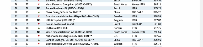 En esta nueva métrica se puede decir que Bitcoin sigue siendo uno de los bancos más grandes del mundo, pero ocuparía un puesto más bajo al quedar en el número 80 a nivel internacional. Bitcoin compartiría el lugar con el banco privado chino Guangfa Bank, que según estudios de SPGlobal posee bajo su custodia unos 343 mil millones de dólares. Mientras que quedaría por debajo del banco brasileño Bradesco, que tiene bajo su control unos 345 mil millones de dólares en activos.