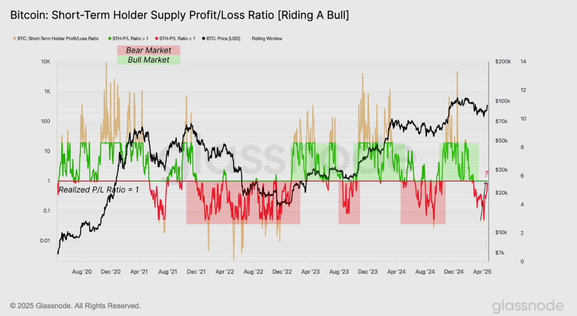 No conformes solamente con los indicadores hasta aquí analizados, los especialistas de Glasnode hacen uso también de la «relación beneficio/pérdida de la oferta de STH». Recientemente, esta métrica repunto hacia su nivel neutral, es decir, cerca de 1.0. Explica Glassnode al respecto: