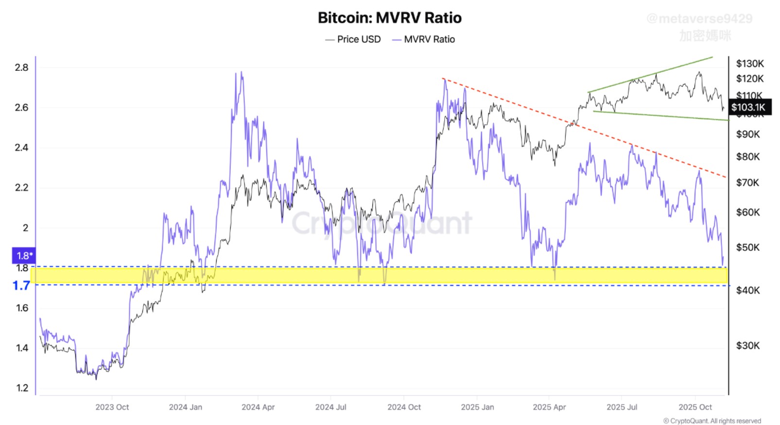 Desde principios de 2024, la proporción MVRV ha encontrado un soporte particularmente fuerte en el rango de 1,7 a 1,8. Cada vez que el mercado ha retrocedido a este nivel, la presión de venta ha disminuido significativamente.